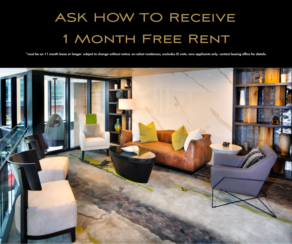 *must be an 11 month lease or longer. subject to change without notice. on select residences, excludes IZ units. new applications only. contact leasing office for details.