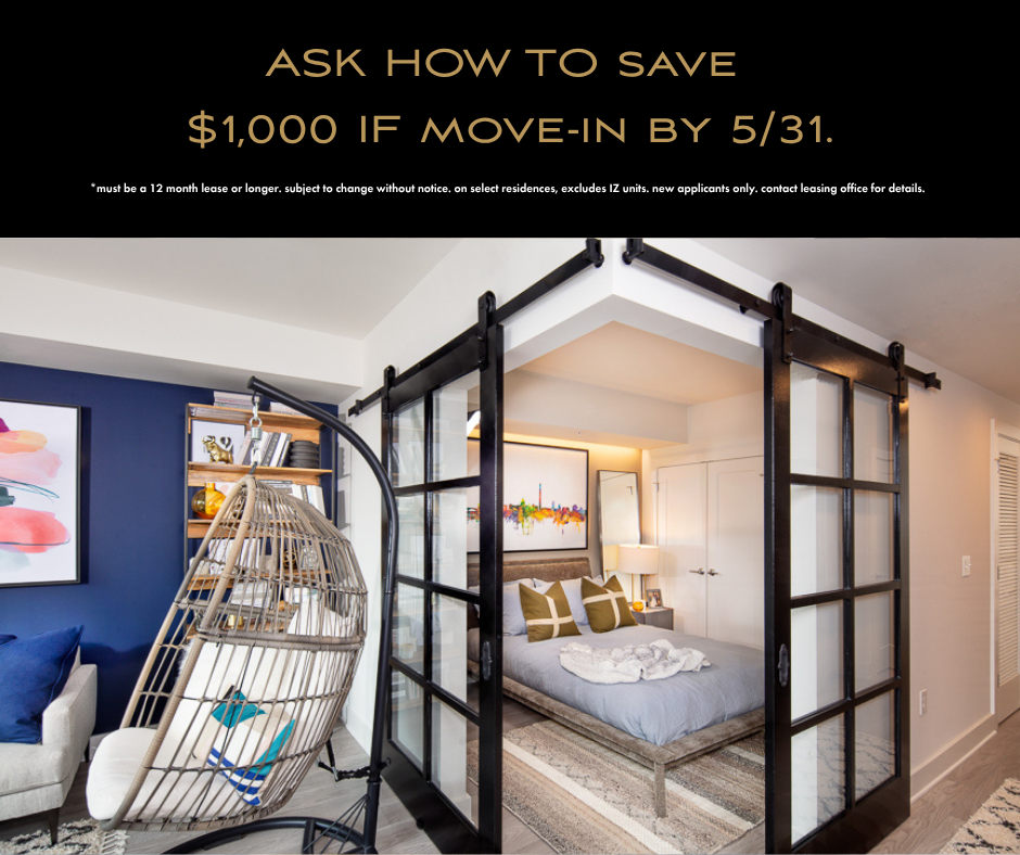 *must be an 12 month lease or longer. subject to change without notice. on select residences, excludes IZ units. new applications only. contact leasing office for details.